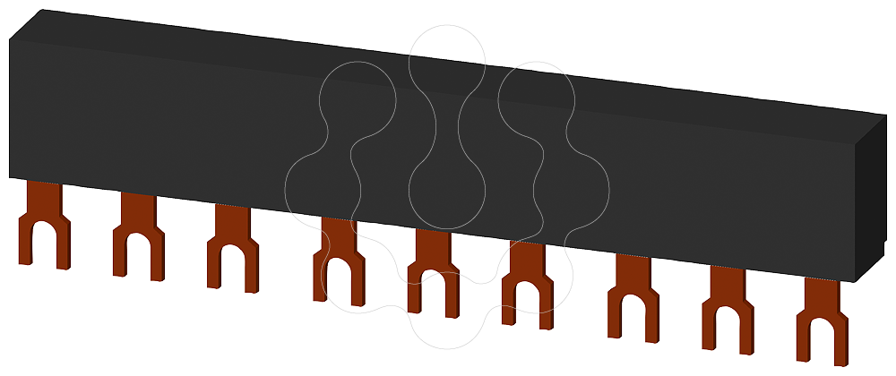 Barramento trifásico distância de separação 45mm para 3 interruptores, conexões em forma de garfo