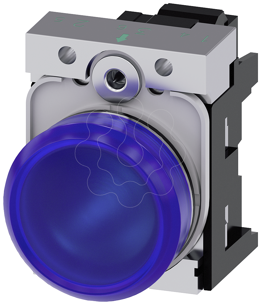 Sinalizador luminoso, 22mm, redondo, metal, alto brilho, azul, lente, plano, 230V CA