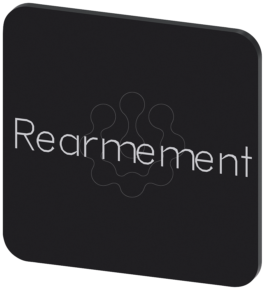 Placa de identificação 22x22mm, placa preto, inscrição: REARMEMENT