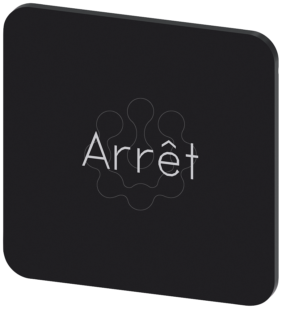 Placa de identificação 22x22mm, placa preto, inscrição: Arret
