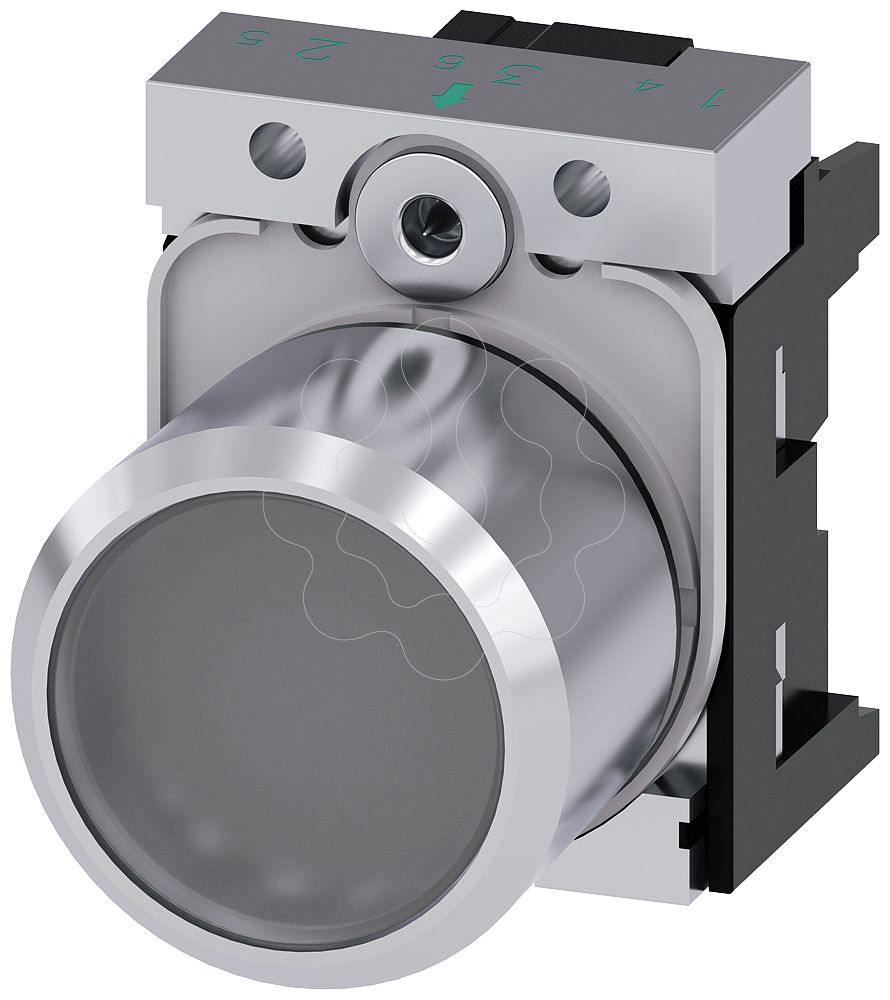 botão, compacto, com curso prolongado (12 mm), 22 mm, redondo, metal, transparente, botão de pressão, plano, tecla com retorno, com suporte, com in...