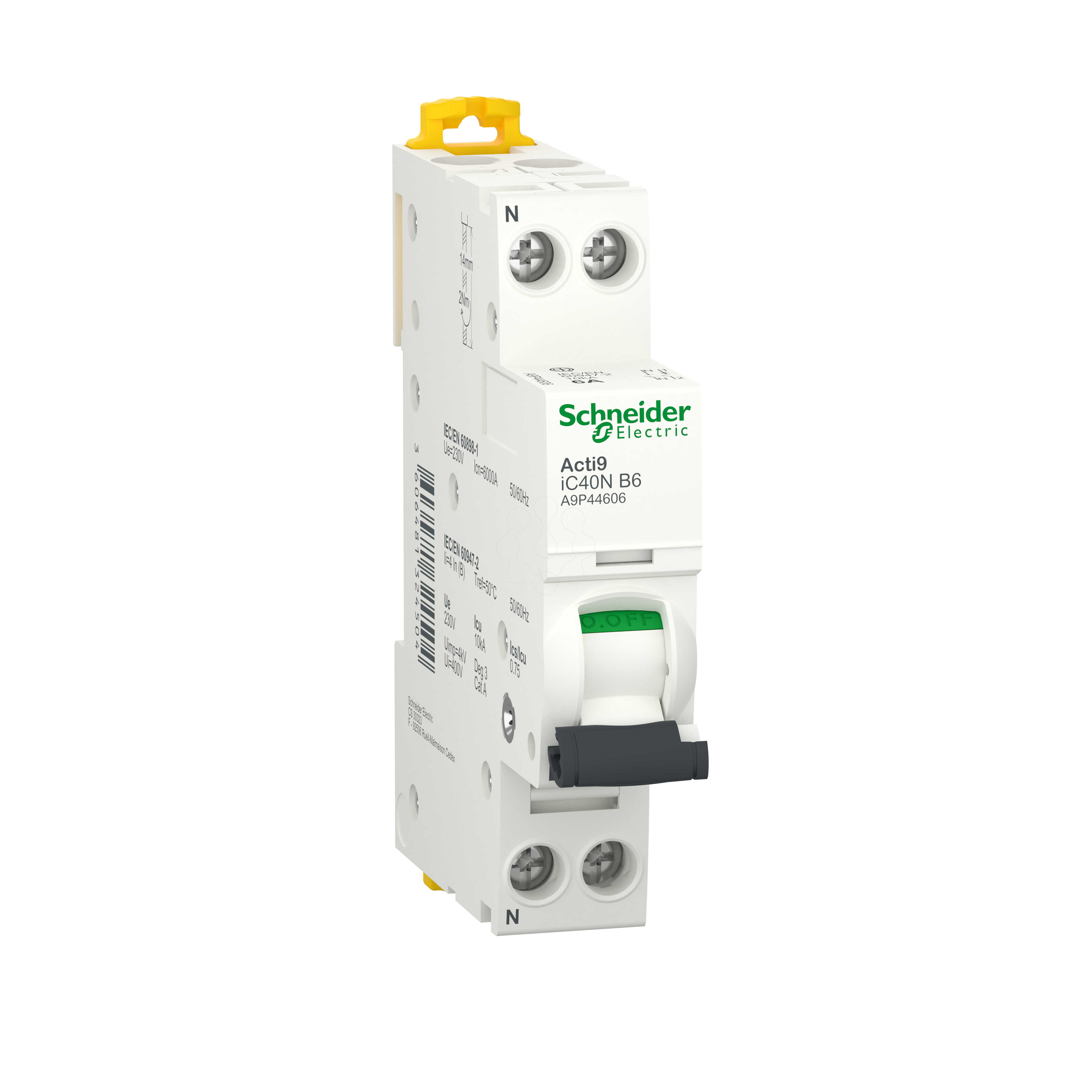 Acti9 iC40N - Disjuntor - 1P+N - 6A - Curva B - 6000A (IEC 60898-1) - 10 kA (IEC 60947-2)