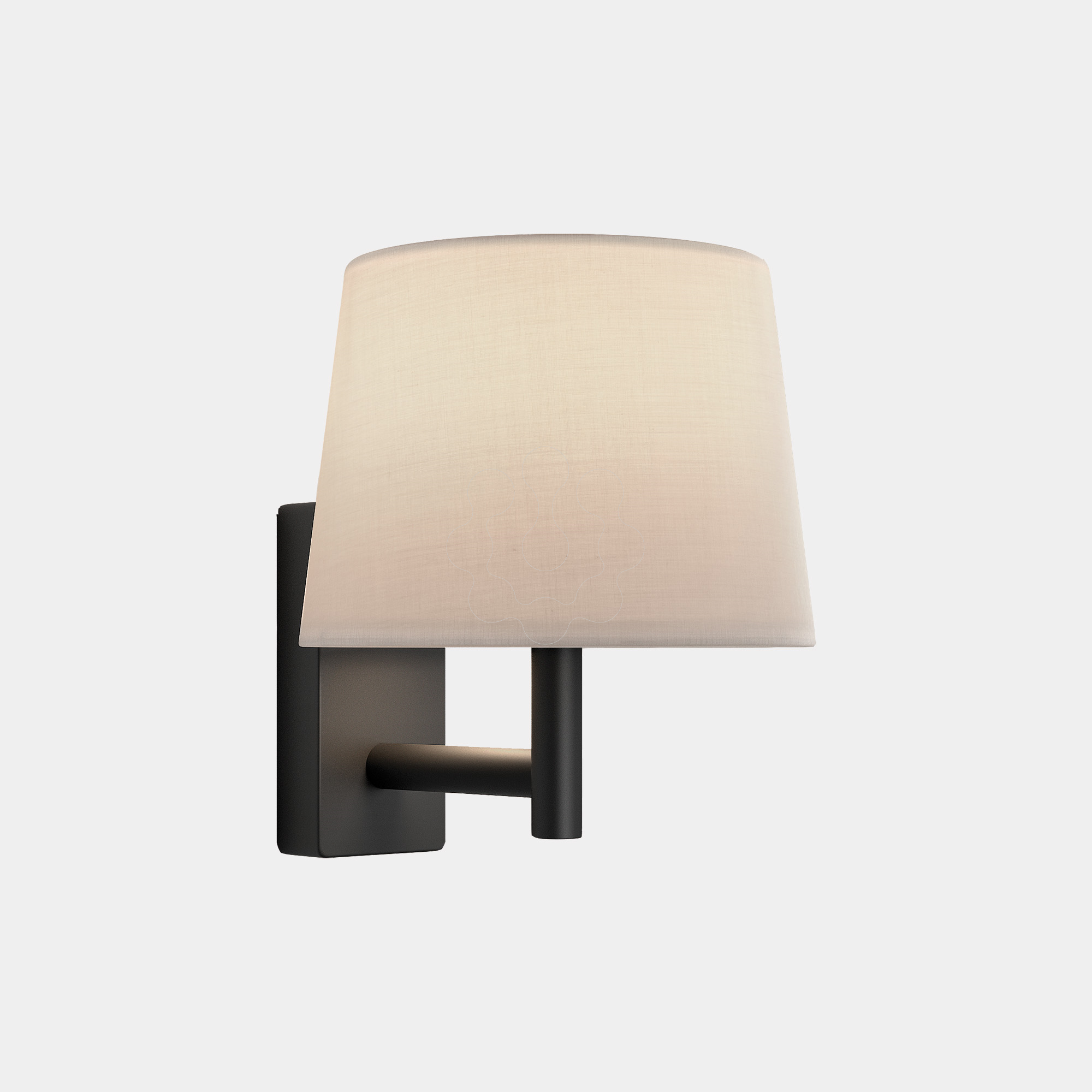 APLIQUE METRICA SHADE E27 15 NEGRO 791LM. LedsC4 Metrica Shade 05-8399-05-82 Aplique para iluminar hacia abajo. Material de la estructura: Aluminio, Acero. Acabado estructura: Negro. Material del difusor: Textil. Garantía: 5 Años. Peso neto del producto (Kg): 0.4 Anchura o diámetro del producto (mm): 70 Altura del producto (mm): 225 Salida del producto (mm): 155 Clase 1. IP: IP20. Equipo incluido: Si. Potencia total: 15.