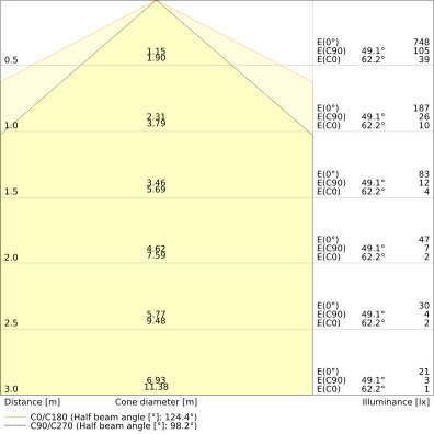 | Cor da luz de acordo com EN 12464-1 | Branco quente <3300 K |