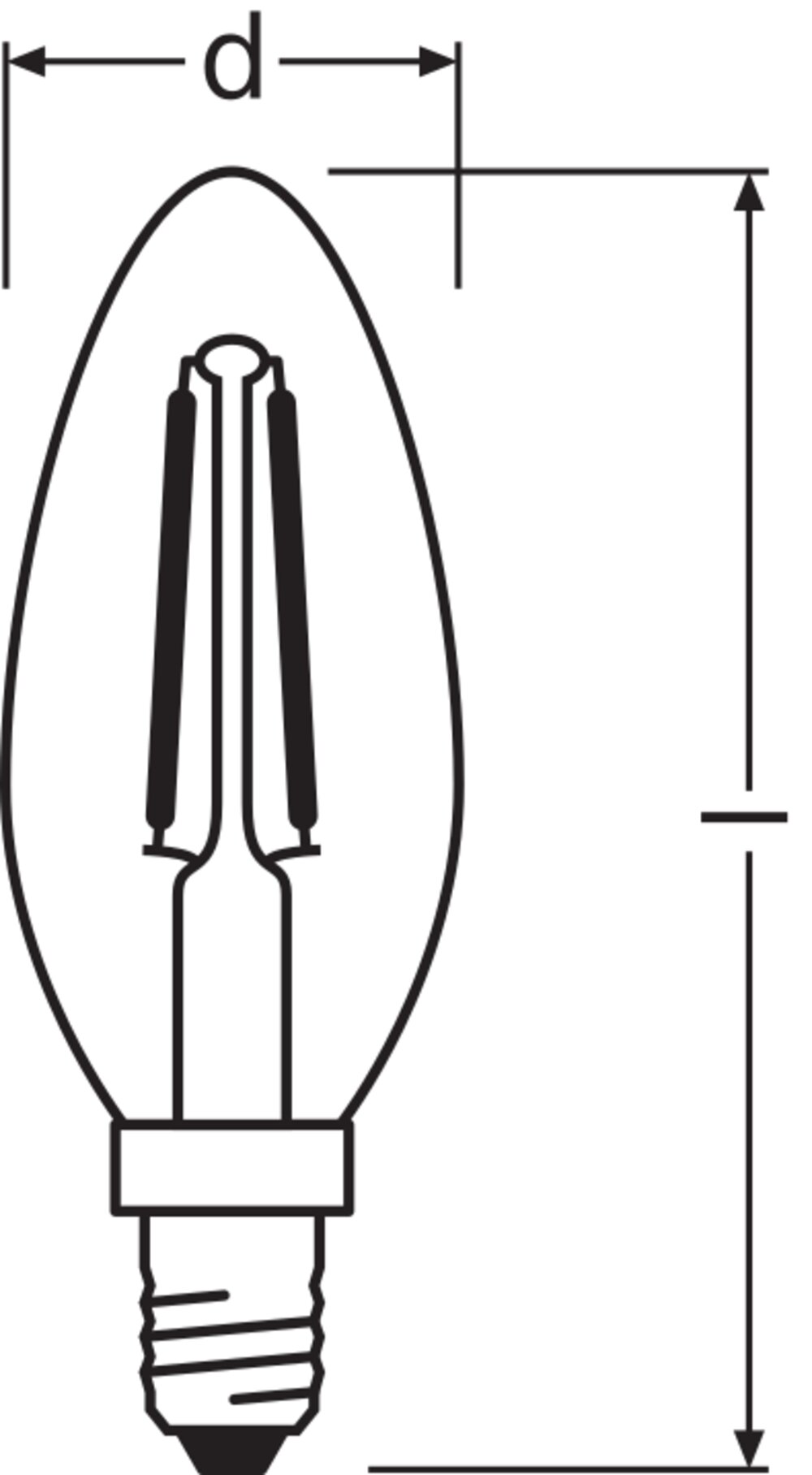 LED CLASSIC B P 2.5W 827 Clear E14. Lâmpadas LED, forma clássica chama. Características do Produto: Lâmpadas de LED profissionais para tensão de linha. Ângulo: até 300°. Vida útil: até 15.000 h. Lâmpada em vidro. Boa qualidade de luz, índice de reprodução de cor R<sub>a</sub>: = 80, cromaticidade constante. Vantagens do Produto: Lâmpadas com a inovadora tecnologia LED de "filamento". Forma, dimensões e fluxo luminoso comparável à lâmpada incandescente ou halogéneo. Sem radiação UV e radiação infravermelha no feixe de luz. Luz 100% instantânea, sem período de aquecimento. Pode ser instalada facilmente no lugar das lâmpadas comuns. Saída térmica mais baixa (comparada com o produto de referência padrão). Lower energy consumption than incandescent or halogen lamps. Áreas de Aplicação: Perfeita para instalações decorativas. Aplicações domésticas. Iluminação em geral. Aplicação no exterior somente em luminárias apropriadas.. Lâmpadas LED, forma clássica chama | Lâmpadas de LED profissionais para tensão de linha | Potência nominal: 2,5 W | Tensão nominal: 220…240 V | Temperatura de cor: 2700 K | Fluxo luminoso: 250 lm | Ângulo de abertura: 300 ° | Comprimento (incl.luminárias redondas): 100.00 mm | Largura (incl.luminárias redondas): 35.00 mm | Vida mediana L90/B10 @ 25 °C: 15000 h | Normas : CE / EAC | Garantia: 4 anos